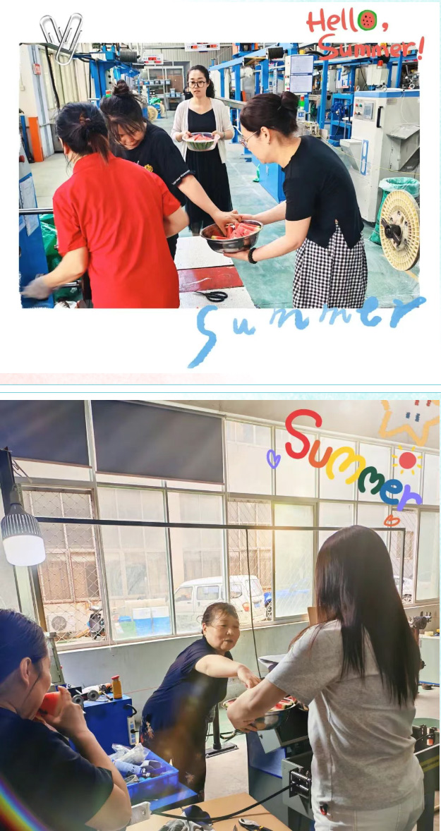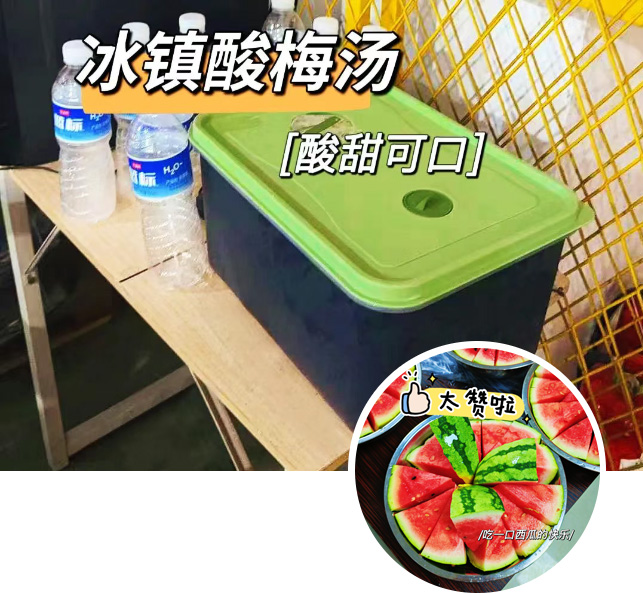 一聲聲親切的問候,一句句暖心的叮囑,伴隨著冰涼的瓜果飲料,瞬間驅散了悶熱,甜到了大家的心坎里。關愛委的小伙伴們一邊遞上清涼,一邊不忘嘮叨:“咱們搶進度、提產(chǎn)能,都是為了給客戶交出更好的產(chǎn)品!但前提是,大家伙兒都得健健康康的,這才是根本!